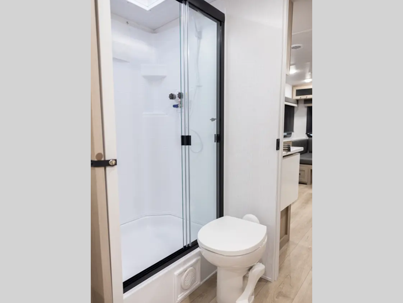 Each is built with 6-sided aluminum cage construction, a fully laminated walkable roof, and aluminum truss roof bracing for added support. You will love the standard features such as, a 200W solar panel, a Key-Alike lock system, and a Winegard Air 360+ prepped for Wi-Fi. The Coast to Coast Package includes amenities that will make you feel right at home including, solid surface kitchen countertops, roller shades, and soft close roller bearing drawers.