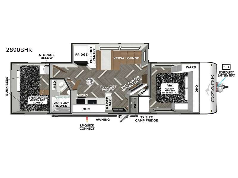 Forest River Ozark travel trailer 2890BHK highlights: