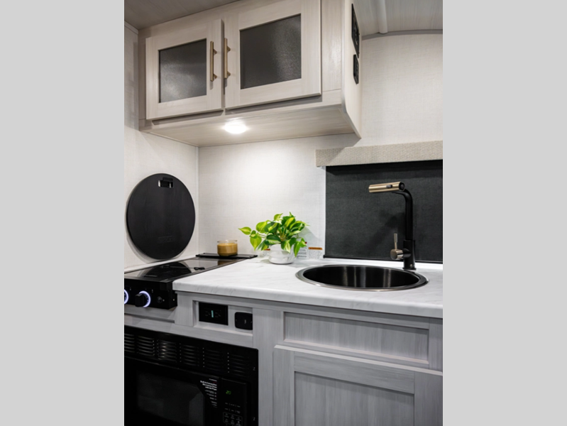 Sleeps 3 Slides 1 Length 23 ft 1 in Ext Width 8 ft Ext Height 10 ft 4 in Hitch Weight 430 lbs GVWR 5000 lbs Dry Weight 4089 lbs Cargo Capacity 911 lbs Fresh Water Capacity 30 gals Grey Water Capacity 30 gals Black Water Capacity 30 gals Available Beds Queen Refrigerator Type 12V Black Glass Cooktop Burners 2 Number of Awnings 1 Water Heater Type Tankless AC BTU 15000 btu TV Info 12V TV Awning Info 14' Axle Count 1 Shower Type Standard -