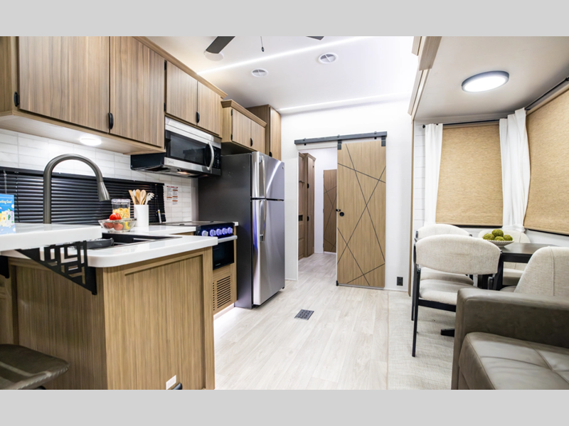 Enjoy crystal-clear sound with our JBL 3-Zone entertainment center, perfect for movie nights or game days. And, cook up a storm in style with our stainless steel kitchen appliances. Some of the new features you will enjoy include a Versa-sink, TFL black walnut entertainment shelves, and stylish roller shades. There are also standard 4K awning blade lighting and a 60K tankless water heater!