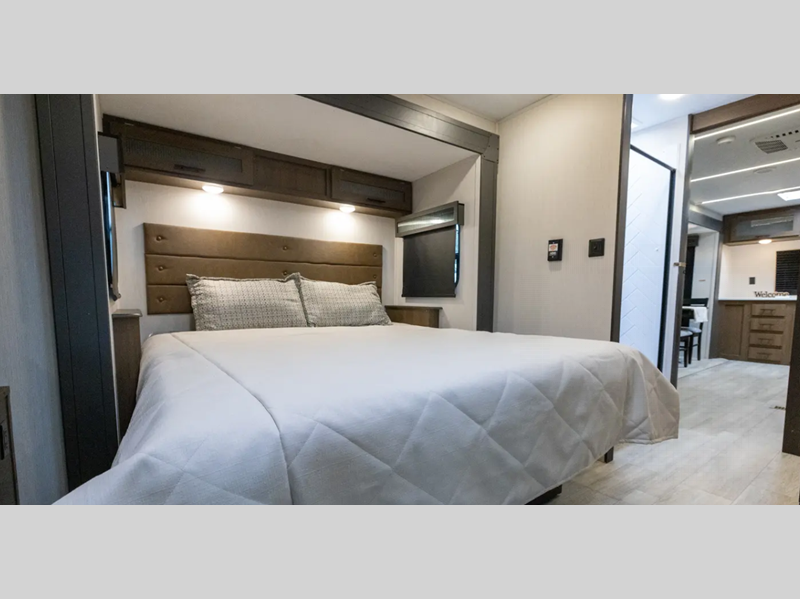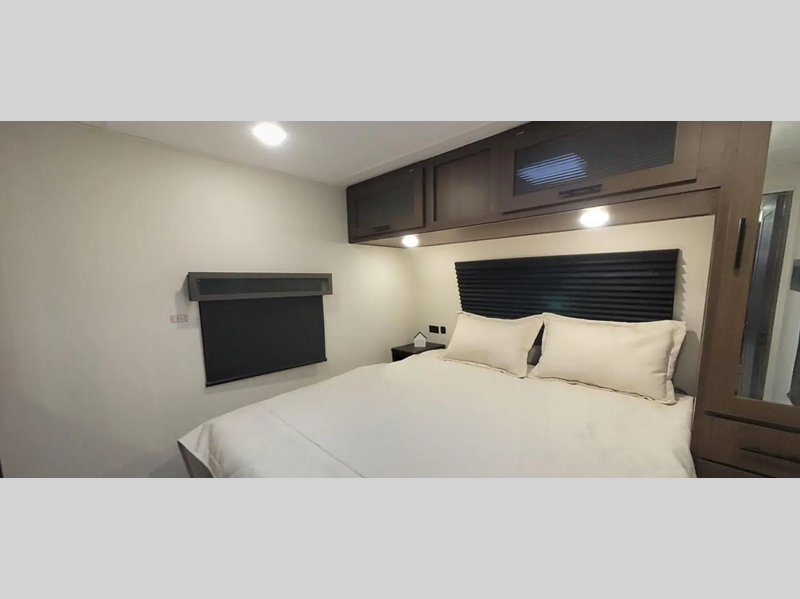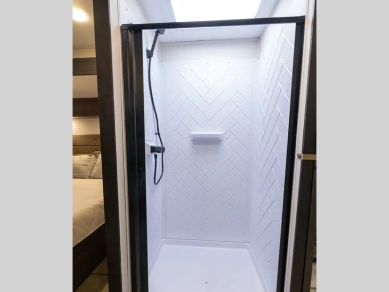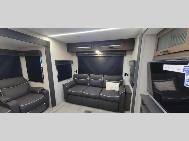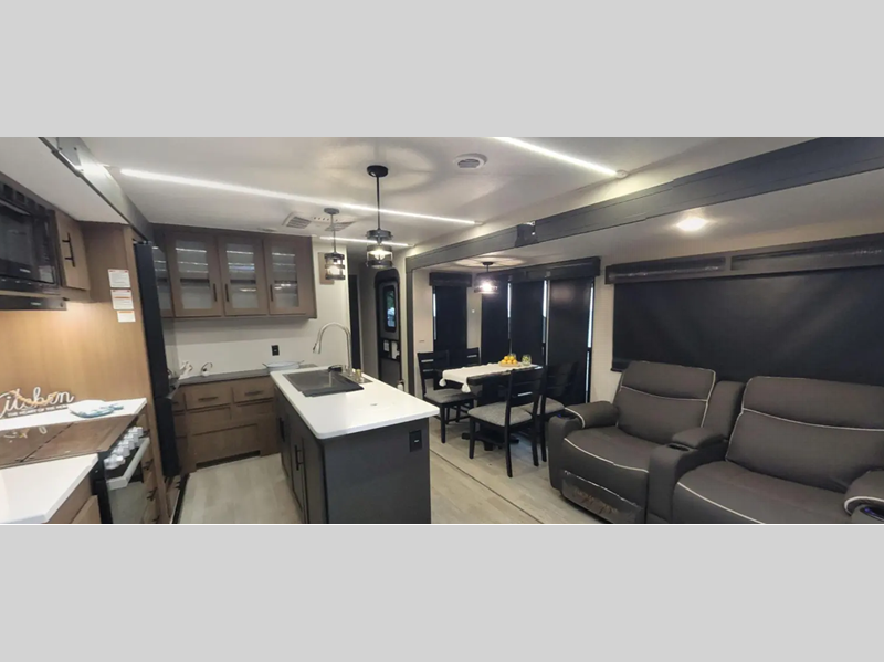 Sleeps 5 Slides 2 Length 33 ft 11 in Ext Width 8 ft Ext Height 11 ft 9 in Hitch Weight 945 lbs GVWR 11145 lbs Dry Weight 7916 lbs Cargo Capacity 3229 lbs Fresh Water Capacity 61 gals Grey Water Capacity 96 gals Black Water Capacity 32 gals Available Beds Maxx King Refrigerator Type 12V Refrigerator Size 10 cu ft Cooktop Burners 3 Shower Size 36" x 30" Number of Awnings 1 Water Heater Type On Demand Tankless TV Info 12V 2-Zone Smart TV Axle Count 2 Shower Type Standard Similar Floorplans