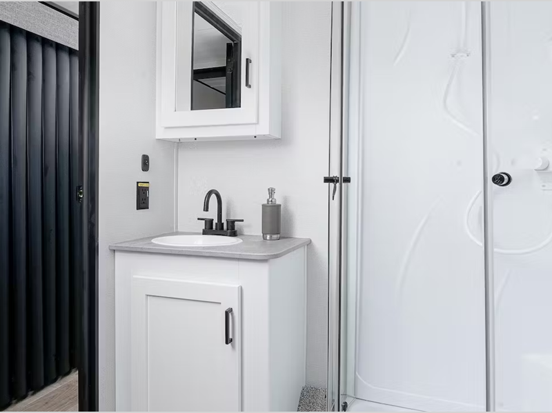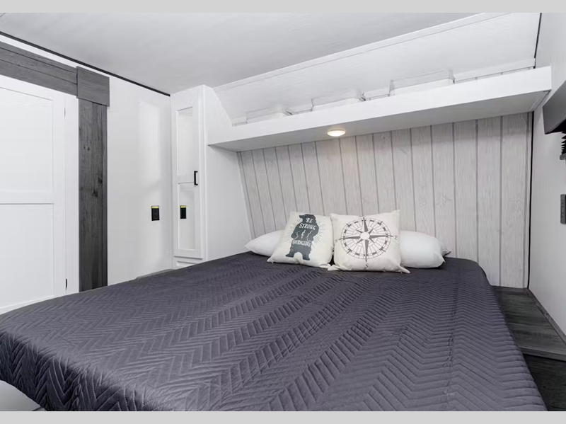 Inside, you'll enjoy blackout night shades, LED lighting, a stainless-steel sink, and pressed membrane premium countertops. The tankless water heater will provide endless hot showers and the 30k BTU furnace will help keep you warm on chilly evenings. Each model is also SolarFlex ready for off-grid capabilities, and there is Furrion backup camera prep for the option to make parking smoother.