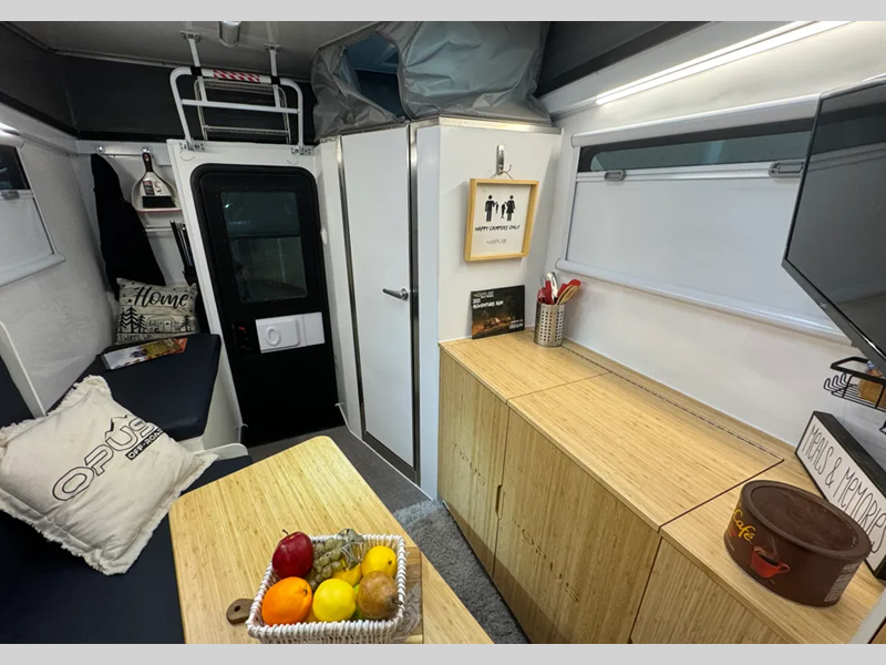 Opus Camper OPUS travel trailer OP13 highlights: Electric Lift Roof Truma Combi ... more about OPUS OP13